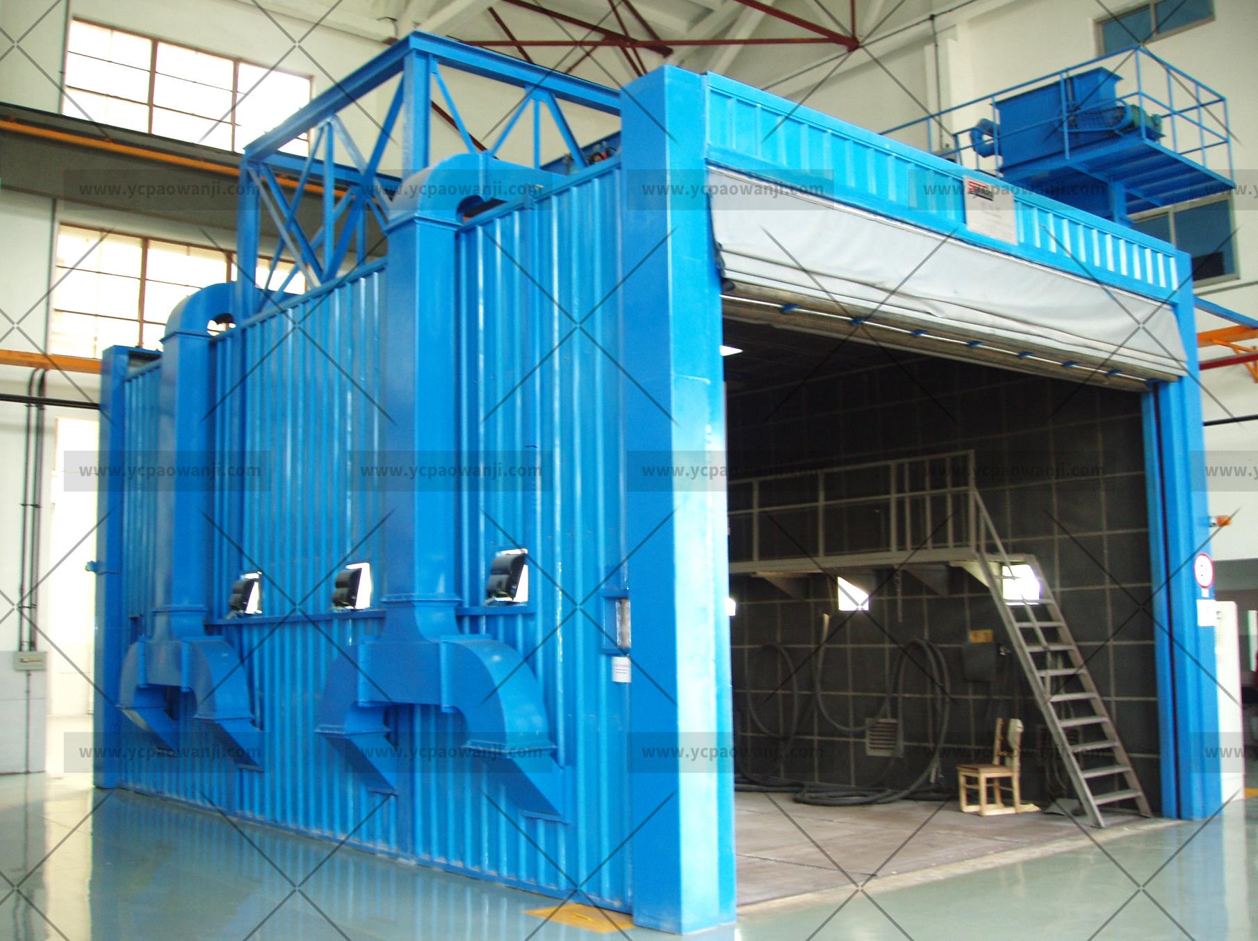 自動環(huán)保噴砂房的主要特征是噴砂過程中操作者處于室內(nèi)。防護(hù)服和頭盔可防止操作者受到磨料沖擊,通風(fēng)裝置通過頭盔為操作者提供新鮮空氣。